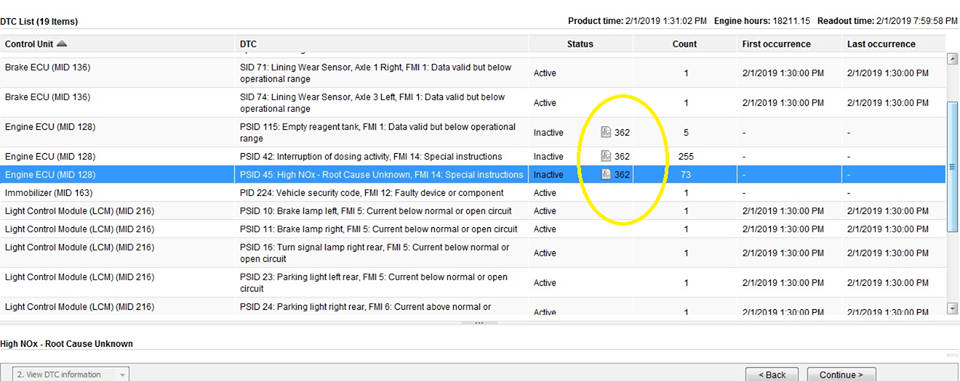 (၂) NOx Error (Active (သို့မဟုတ်) Inactive) ကို ECU ဘောက်က သိနေလားမသိဘူးလား၊